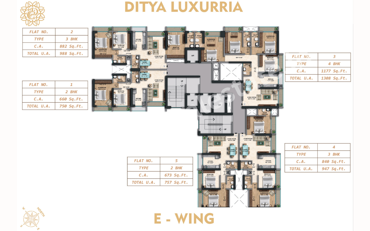 - Total Area: 947 – 1135 sq.ft Ditya Luxurria Sale Plan New