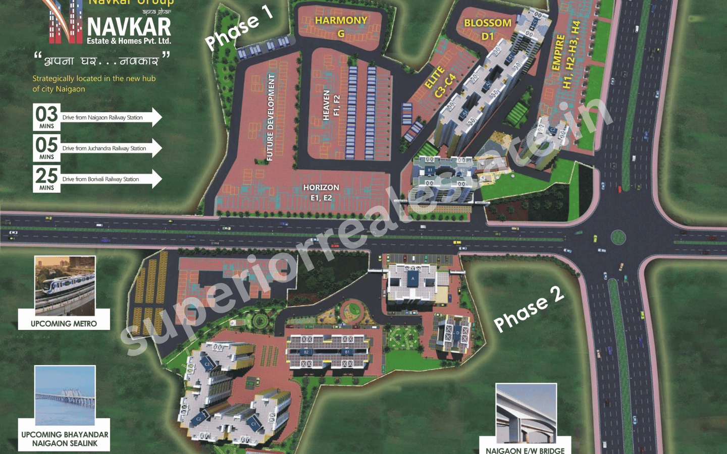 The project offers good connectivity to Naigaon Railway Station and nearby areas like Vasai and Virar. Schools, hospitals, shopping areas, and daily needs are all within close reach.